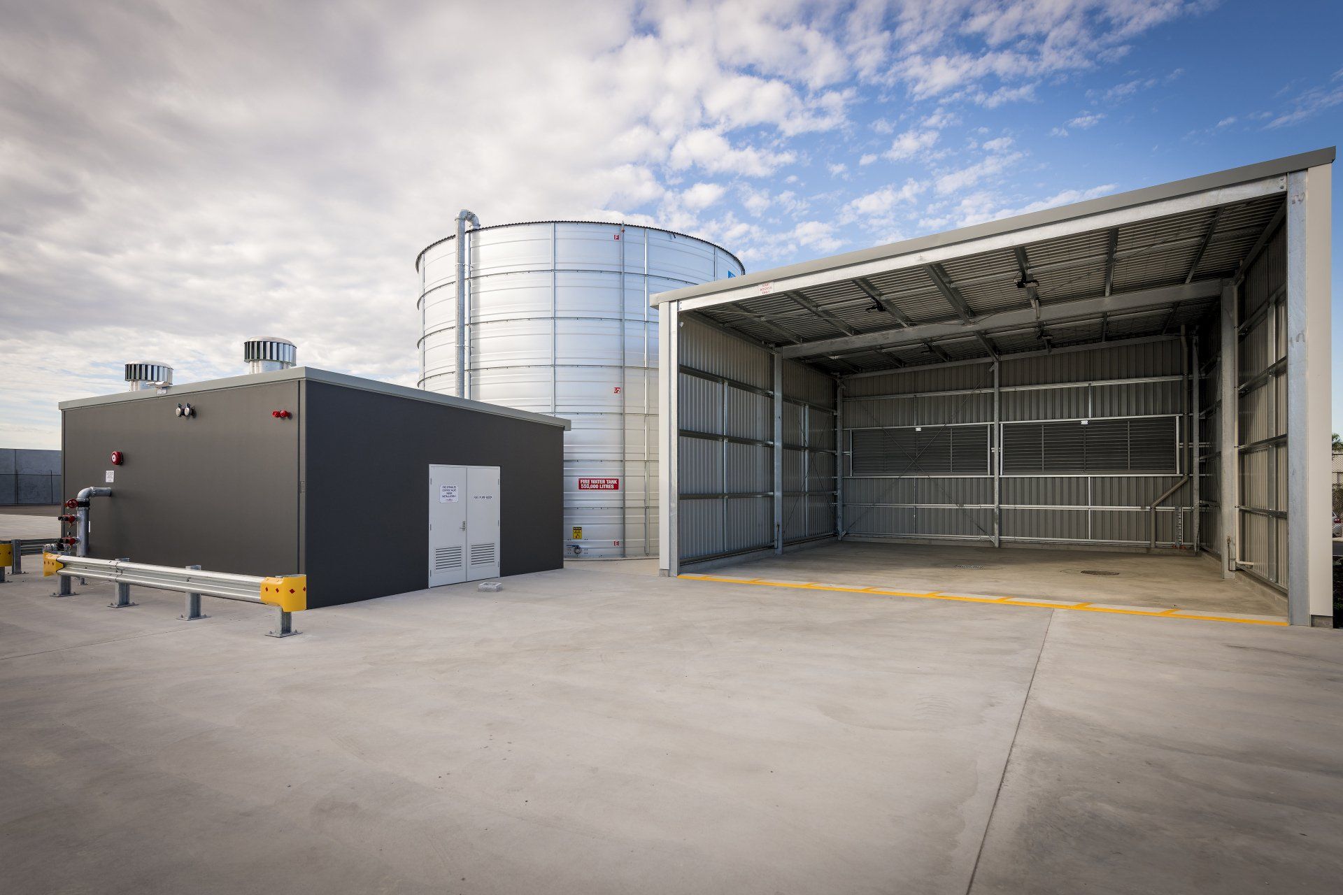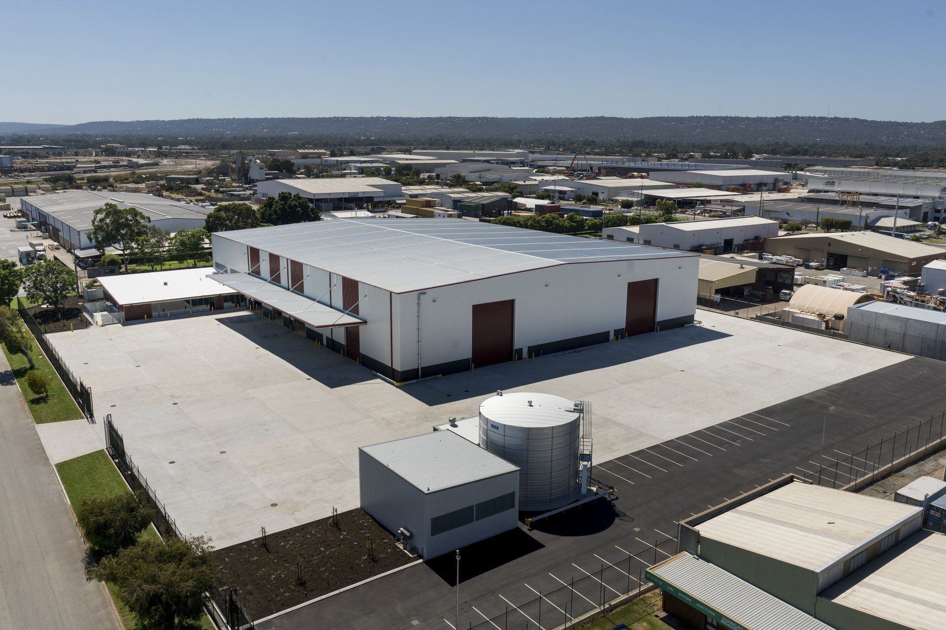 The development consists of a new 5,015m2 depot/warehouse space, 500m2 office, 150m2 wash down bay, 195 car bays and associated hardstand and landscaping.