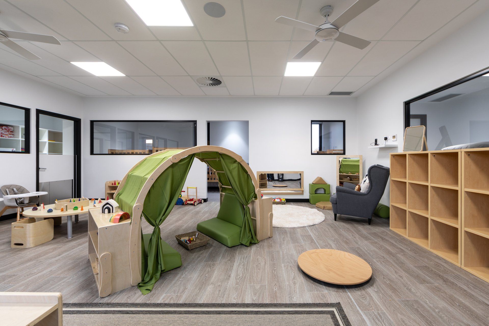 The project provides a change in urban landscape to this area of Vic Park, through complete internal re-fit of a previous warehouse, to form the new childcare centre.