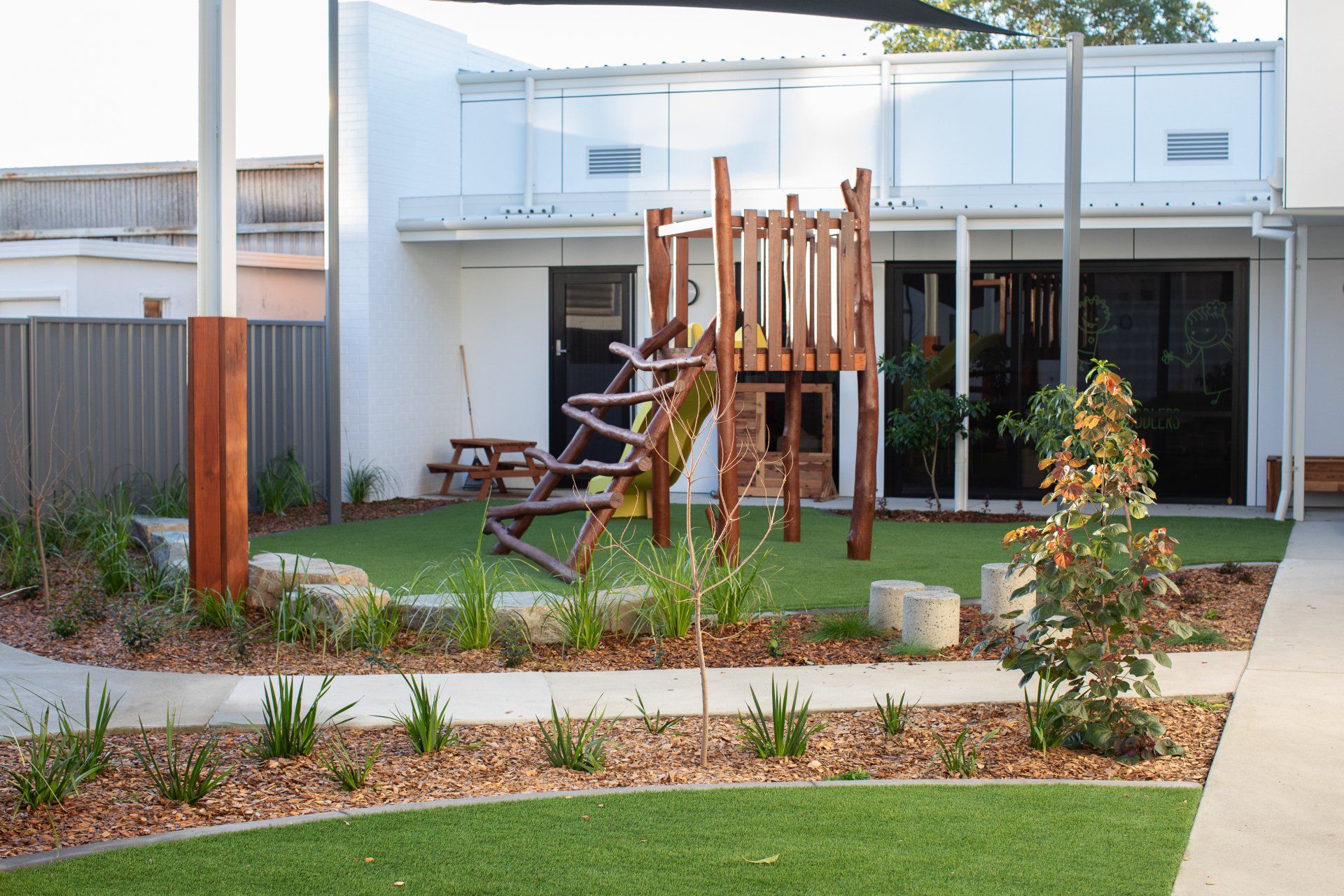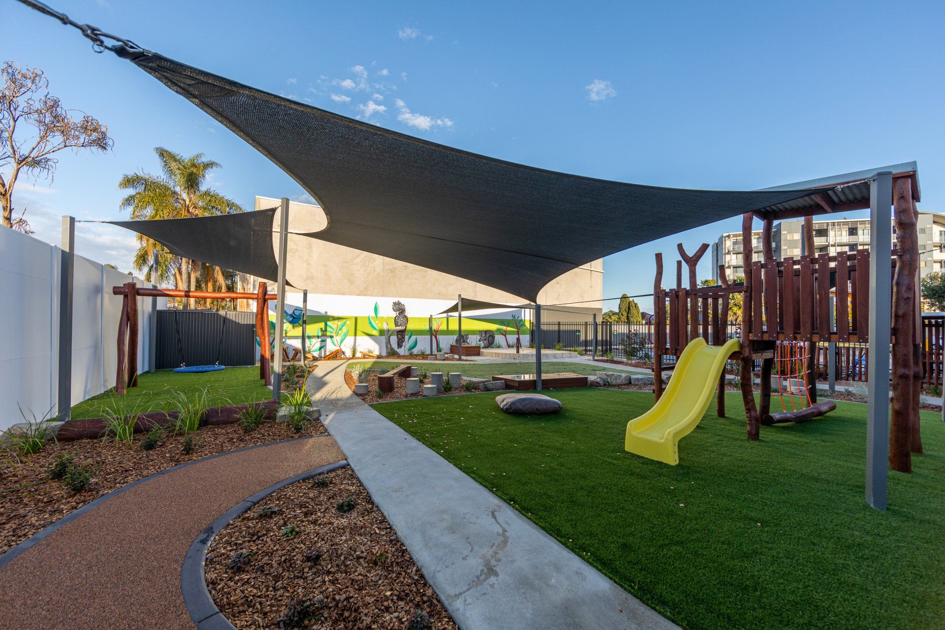 The site is a brownfield site of 1,102sqm in area and includes five activity zones, numerous art benches, sleep outs, prep areas, three child friendly bathroom facilities, with a new reception, kitchen, office and staff amenities across ground and first floor levels. 18 carparking bays are provided as well as two separate outdoor playscape areas totalling 674sqm.