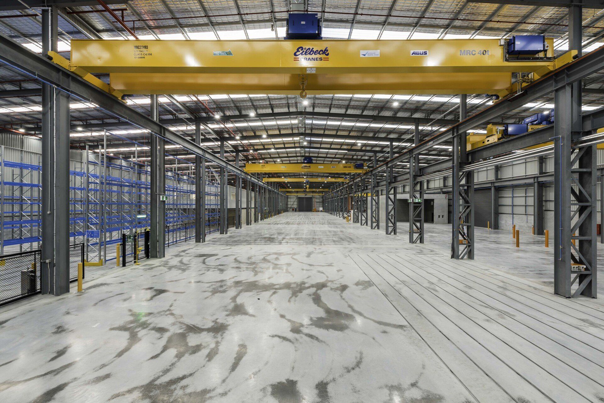 The facility consists of a 10,560m2 warehouse and workshop facility inclusive of amenities and lunch room space. An office of 1,500m2 will be provided and parking for 218 cars. The external hardstand comprises approximately 26,000m2 of heavy-duty concrete pavement. 4 x 30T travelling gantry cranes are included in the scope of work.