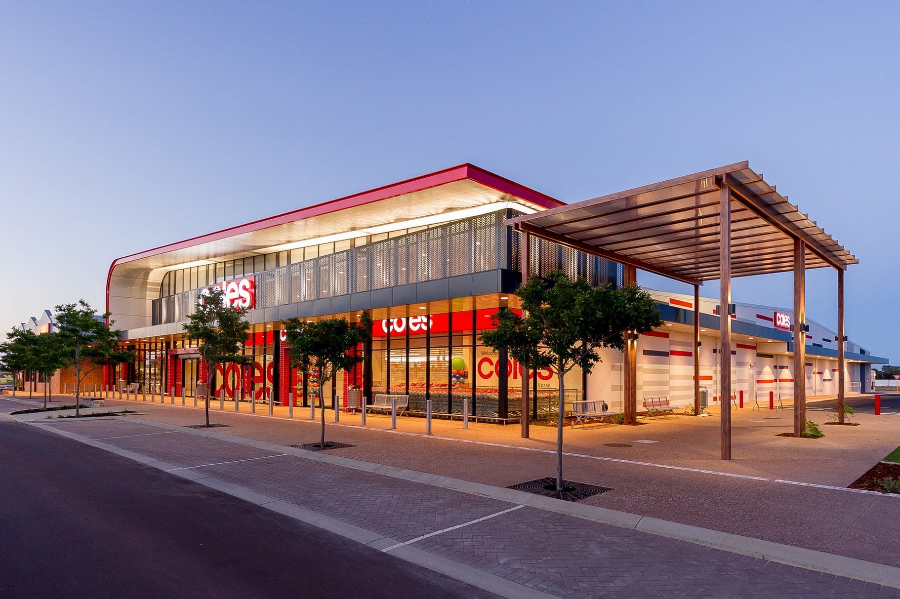 The development is a prime example of collaborative community engagement blending local materials and a country atmosphere to the experience of grocery shopping.